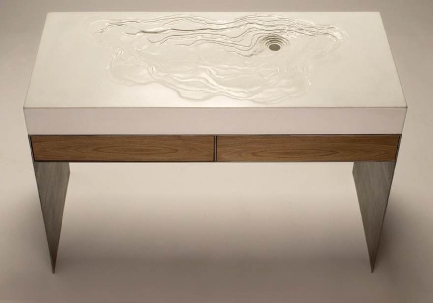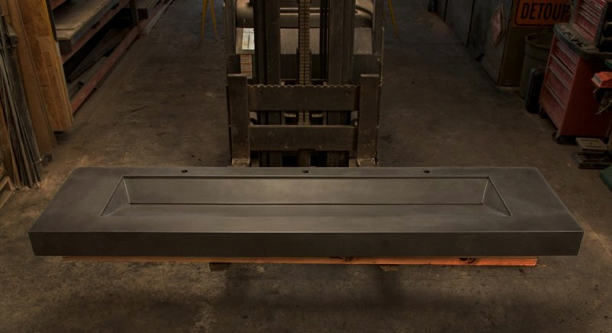 Production régulière de lavabos en béton ciré moulé ultra haute performance.